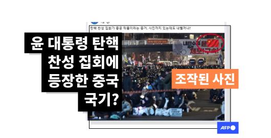 조작된 사진... 윤 대통령 체포 구호 담긴 현수막에 중국 국기 합성한 것