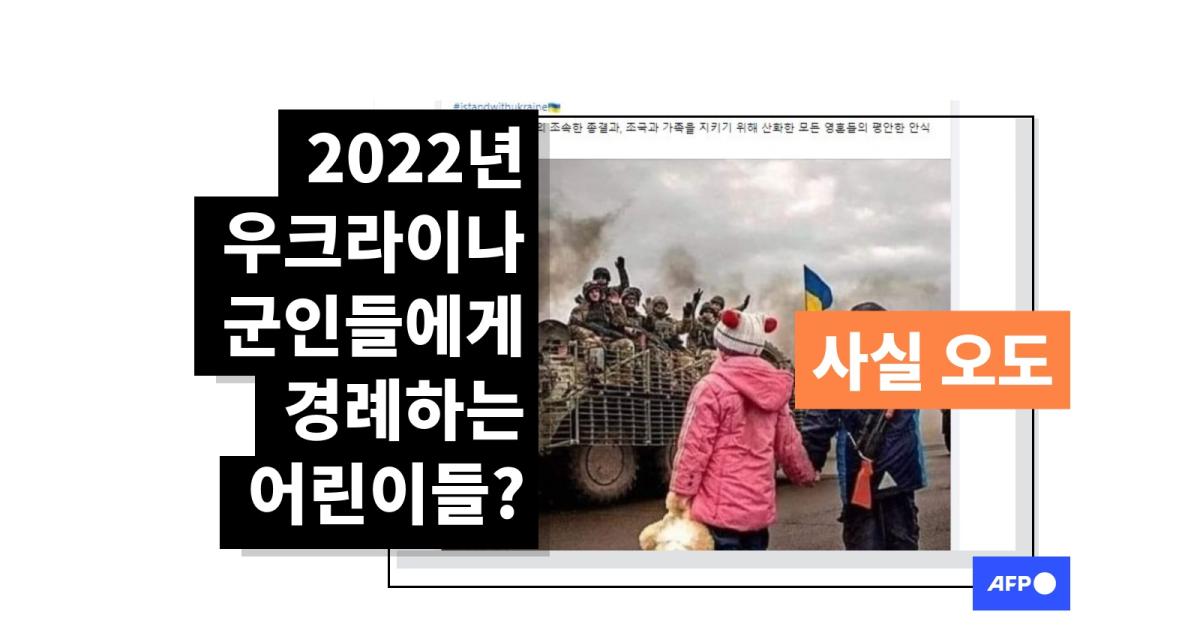 사진에는 두 아이가 장갑차에 탄 군인들을 바라보는 모습이 담겼는데, 한 아이는 군인들을 향해 경례하고 있다.
