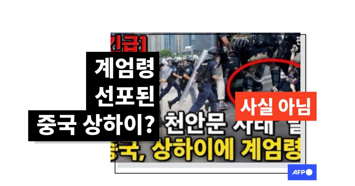 이미지에는 "[긴급] '제2의 천안문 사태' 발발. 중국, 상하이에 계엄령"이라는 문구가 삽입됐다.