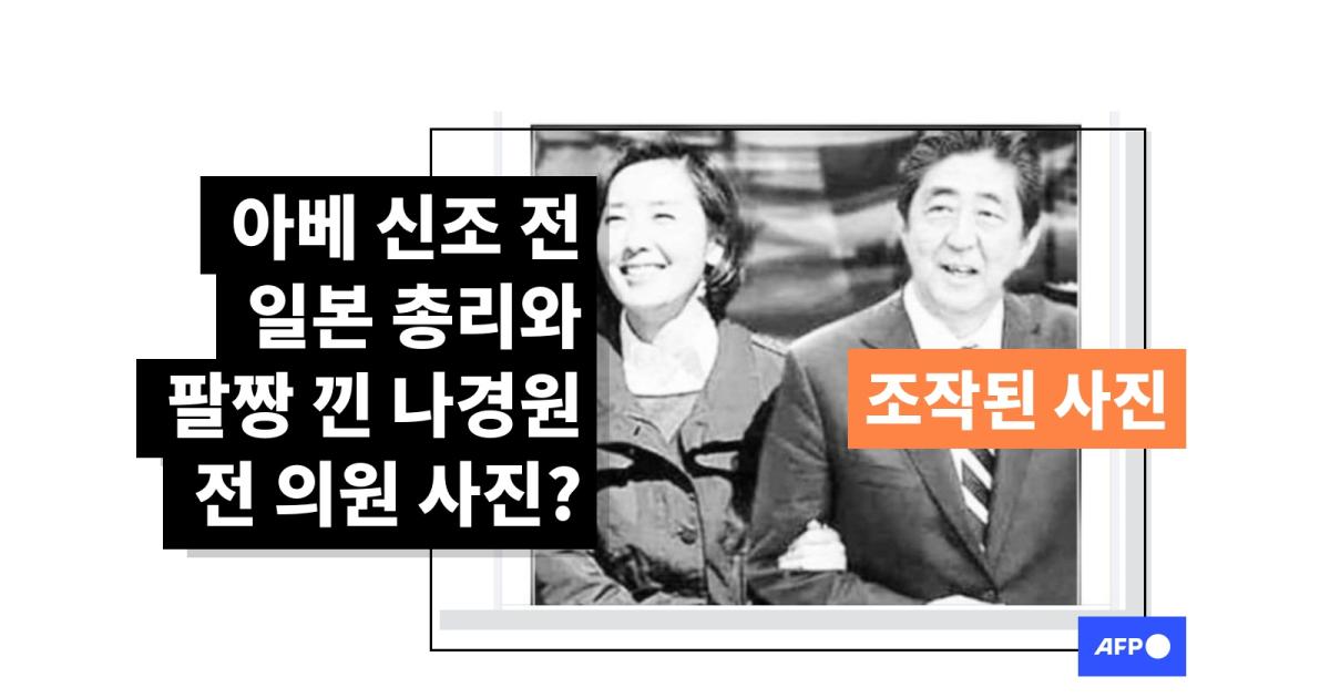 조작된 사진... 2011년 나 전 의원 사진과 2017년 아베 전 총리의 사진을 합성한 것