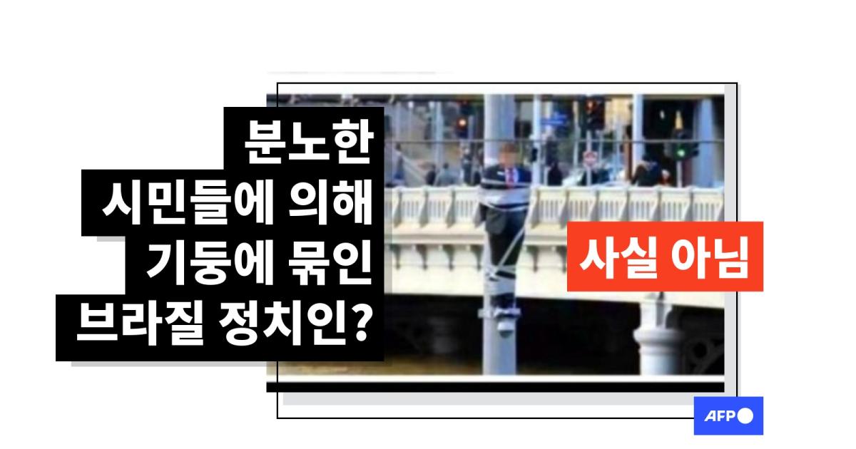 게시글에는 도심으로 보이는 장소에서 양복을 입은 인물이 기둥에 묶여 있는 모습이 담긴 사진이 공유됐는데, 사진 상단에는 "요즘 브라질에서는 범죄를 저지른 부패한 정치인을 국민들이 기둥에 묶어 버린다고 하네요 국내 도입이 시급합니다 g17.com.br/noticia/ma/pop…pic.twitter.com/poSbtSECDM"라는 문구가 등장한다.