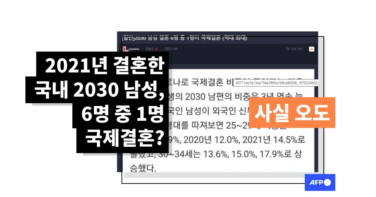 한편 통계청 관계자는 AFP와 인터뷰를 통해 "2021년 20대와 30대 남성의 총 혼인건수는 150,238건인데, 이 중 출생기준 한국인 남성이 외국인이나 귀화자와 결혼한 건수는 4,862건으로, 약 3.2%로 계산된다"라며 이는"6명 중 1명(약 17%)이라는 주장보다 명확히 낮은 수치"라고 말했다.