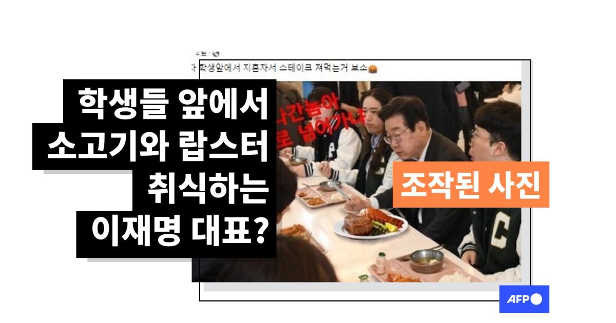 조작된 사진... 원본 사진 속 이 대표, 학생 식당 밥 취식