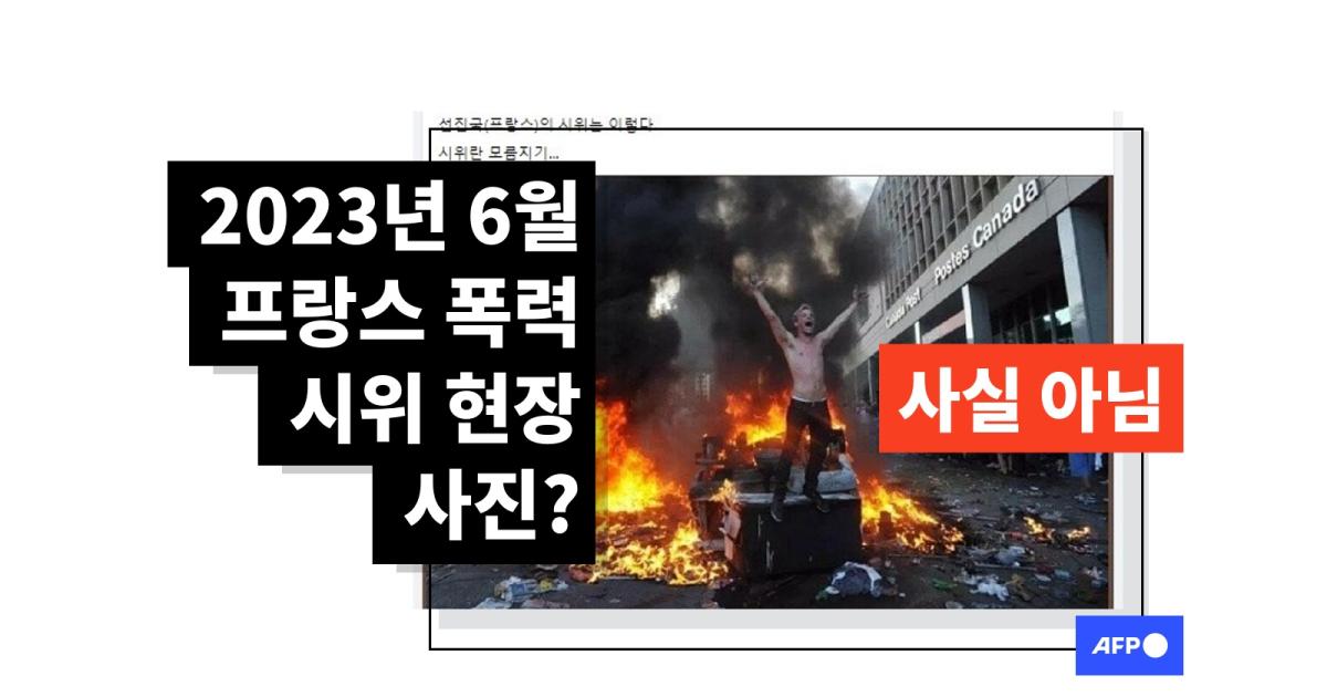 하지만 이 사진은 2011년 북미아이스하키리그(NHL) 스탠리 컵 (Stanley Cup) 결승전 이후 캐나다 밴쿠버에서 일어난 폭동 당시 촬영된 것으로, 2023년 프랑스 시위와는 무관하다.