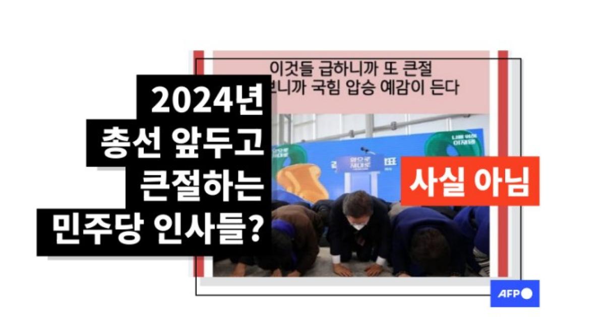 그러나 이 사진은 2022년 1월 이재명 당시 대통령 후보가 기자회견에 앞서 절하는 모습을 촬영한 것으로, 2024년 총선과는 무관하다.