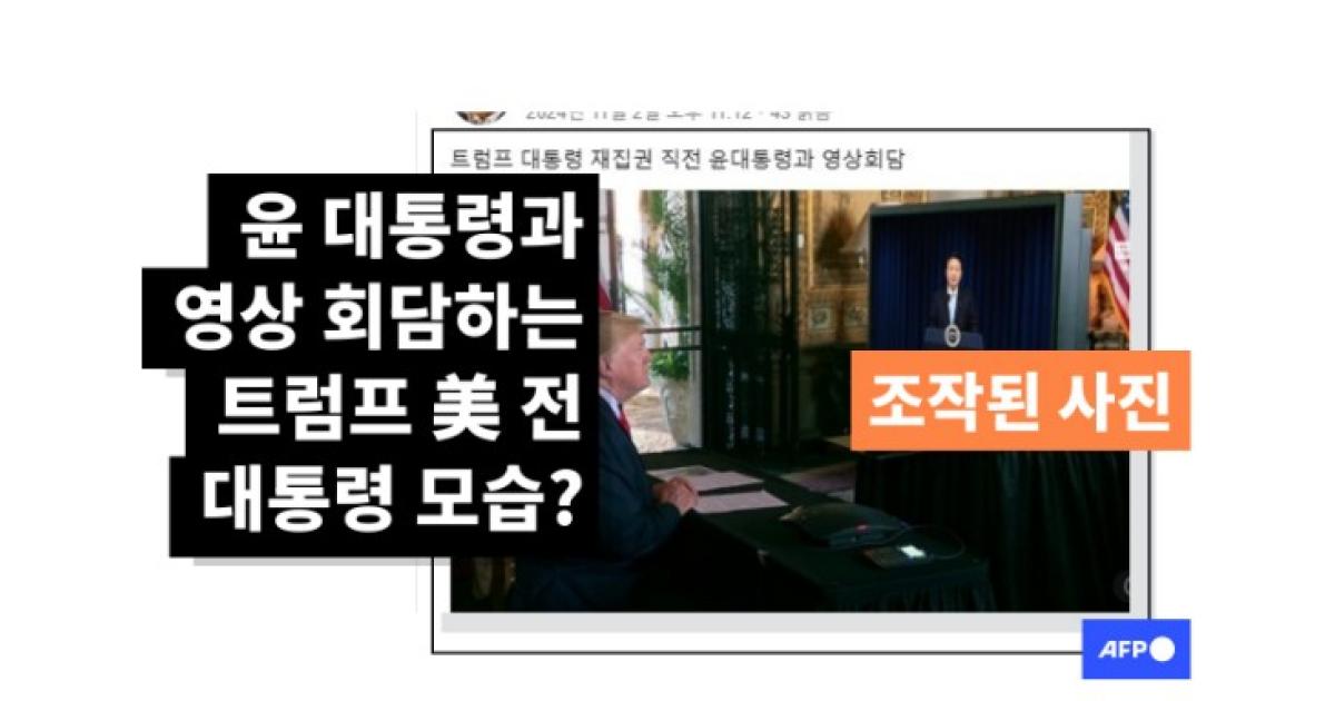 앞서 미국 공화당 전당대회에서 윤 대통령의 연설을 지켜보는 트럼프 전 대통령의 모습이라는 사진이 온라인상에 공유됐는데, AFP는 취재를 통해 이 사진이 조작됐음을 밝힌 바 있다.