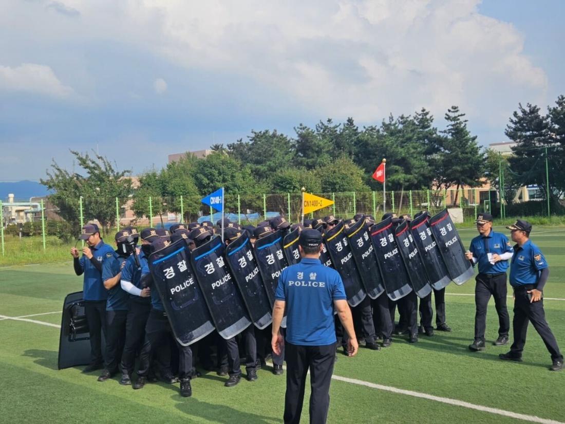 충남경찰청은 작년 9월 훈련 때 촬영한 사진을 AFP에 제공했는데 이 사진에서도 'CN'이라 적힌 깃발들을 확인할 수 있었다.