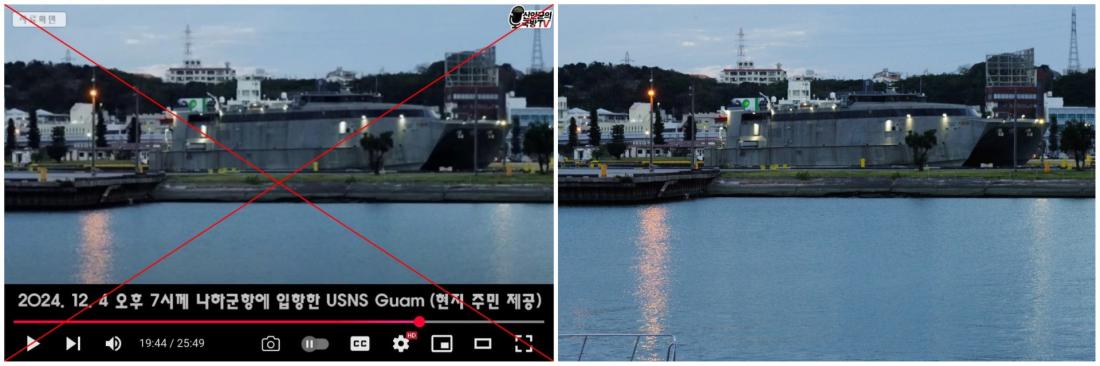 미 해군 고속수송선이 비상계엄 선포 다음날인 2024년 12월 4일 오후 7시쯤 일본 오키나와의 나하 군항에 도착하는 모습을 촬영한 것이라고 주장된 사진은 페이스북, 스레드, 일간베스트, 다음 카페 등에도 공유됐다.