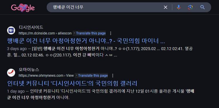구글 검색을 통해 이 게시물은 2월 12일에 공유됐으나 현재 삭제된 상태임을 확인할 수 있었다.