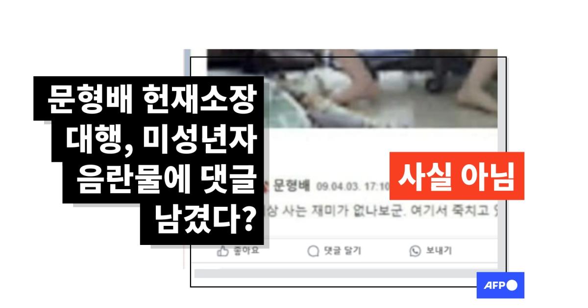 문형배 헌법재판소장 권한대행의 댓글이 달린 미성년자 음란물 게시물이 소셜미디어상에서 반복적으로 공유됐다. 해당 게시글이 윤석열 대통령 지지자들 사이에서 화제가 되자 국민의힘도 문 대행을 비판하는 논평을 내놓았다. 그러나 이 게시물은 조작된 것으로, 고교 동문 게시판에 문 대행이 남긴 댓글을 음란물 사진과 합성한 것이다.