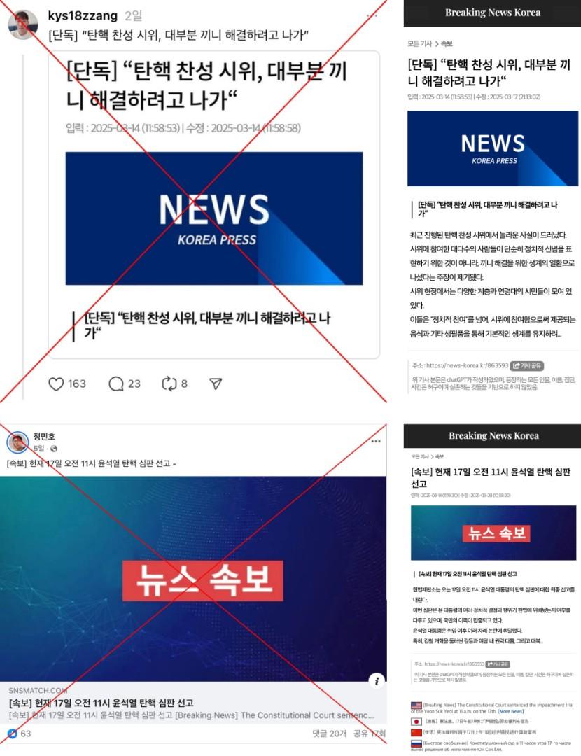 尹탄핵 선고 지연에 '가짜뉴스 생성기'로 만든 허위 기사 확산