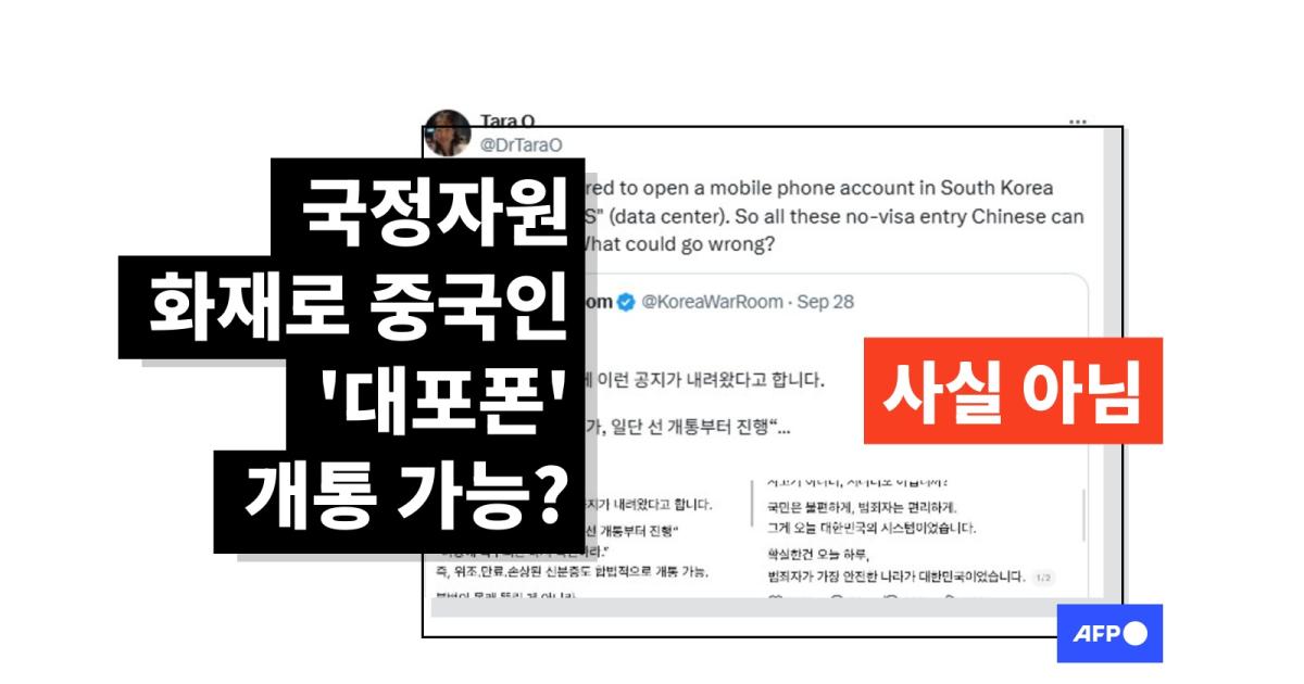 지난달 말 국가정보자원관리원 데이터센터 화재로 정부의 주민등록 데이터베이스 접근이 일시적으로 중단되자, 소셜미디어상에서는 정부의 무비자 입국 제도를 통해 입국한 중국 관광객들이 신원 확인 없이 휴대전화 계정을 개통할 수 있게 됐다는 주장이 반복적으로 공유됐다. 그러나 행정안전부 공공데이터 담당 관계자는 정부의 신원확인 데이터베이스 접근이 무비자 중국인 관광객 입국 제도 시행 이전에 이미 복구됐다며 해당 주장을 부인했다. 그는 또 장애 기간 중에도 통신사들이 가입자의 신원을 확인해야 하는 법적 의무가 유지됐다고 밝혔다.