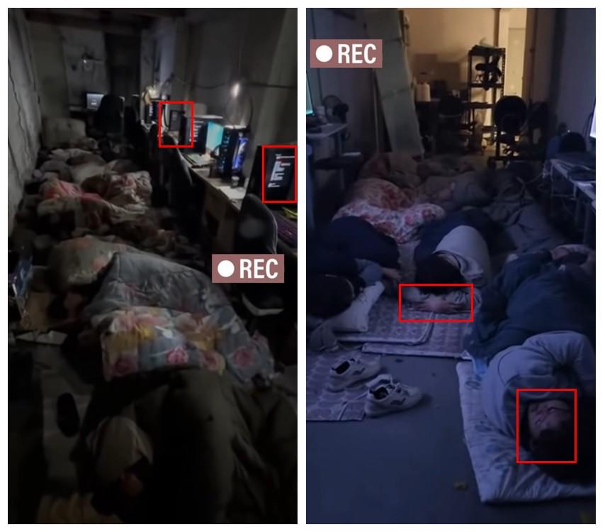 영상에는 사기 행각에 사용되는 것으로 보이는 컴퓨터가 여러 대 놓인 어두운 방 안에서 사람들이 바닥에 누워 있는 장면이 나온다. 이어 한 인물이 "도망치고 싶지만 탈출할 수 없다"고 말하는 장면이 이어진다.
