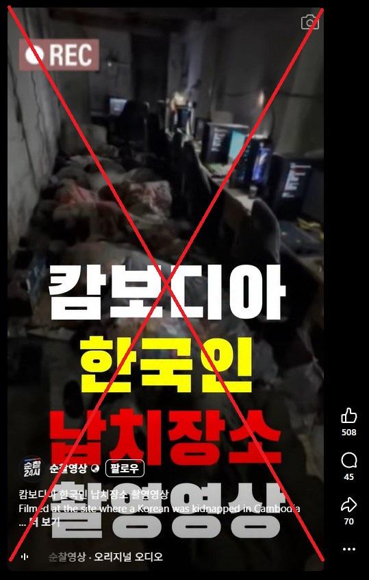 문제 영상은 2025년 10월 20일 "캄보디아 한국인 납치장소 촬영영상"이라는 자막과 함께 페이스북에 게시됐다.