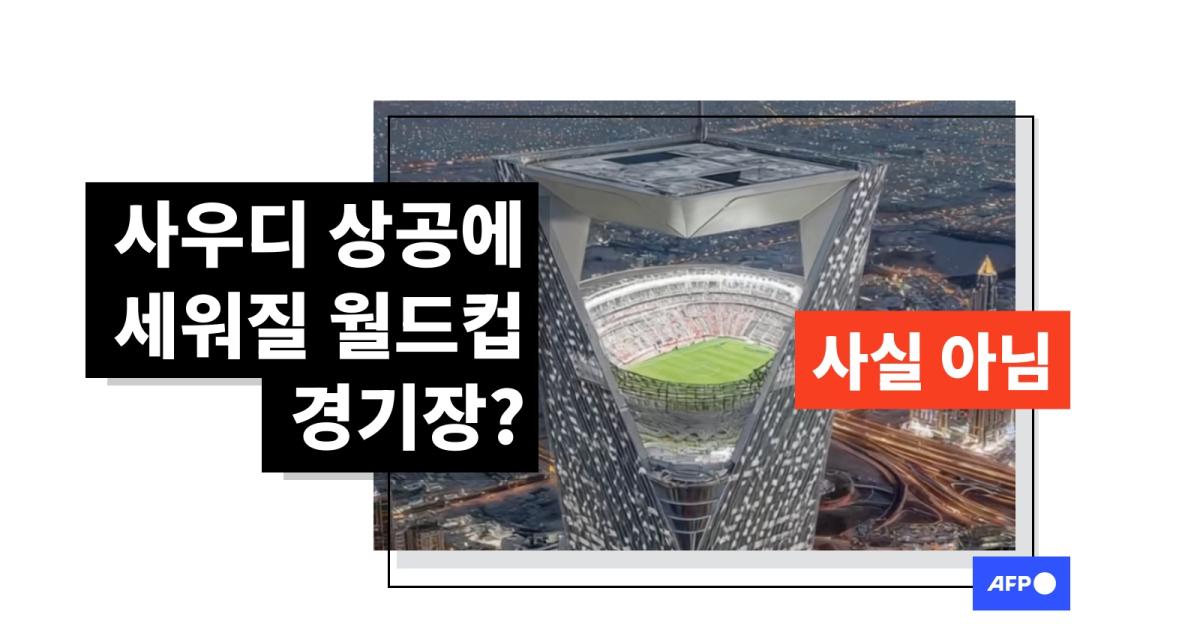 한 영상이 2034년 월드컵 개최국인 사우디아라비아에 건설될 '세계 최초 상공 경기장'이라는 주장과 함께 소셜미디어상에 반복적으로 공유됐다. 앞서 사우디는 북서부에 개발 중인 미래형 도시에 경기장을 지을 예정이라고 발표한 바 있으나 문제 영상은 이와 무관하다. 해당 영상을 만든 창작자는 AFP에 인공지능(AI)을 활용해 만든 합성물이라고 밝혔으며, 사우디 미래도시 프로젝트 관련 사안에 정통한 한 소식통은 AFP에 문제 영상에 등장하는 경기장 디자인은 사우디가 계획 중인 어떠한 내용과도 유사하지 않다고 전했다.