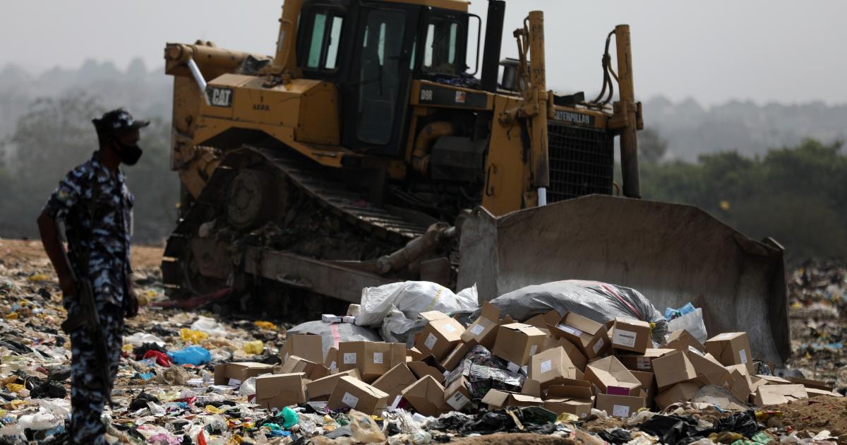 하지만 이는 오해의 소지가 있는 주장이다. 문제의 영상은 2021년 12월 나이지리아 당국의 명령으로 유통기한이 지난 코로나19 백신 100만회분을 폐기하는 장면을 촬영한 것이다.