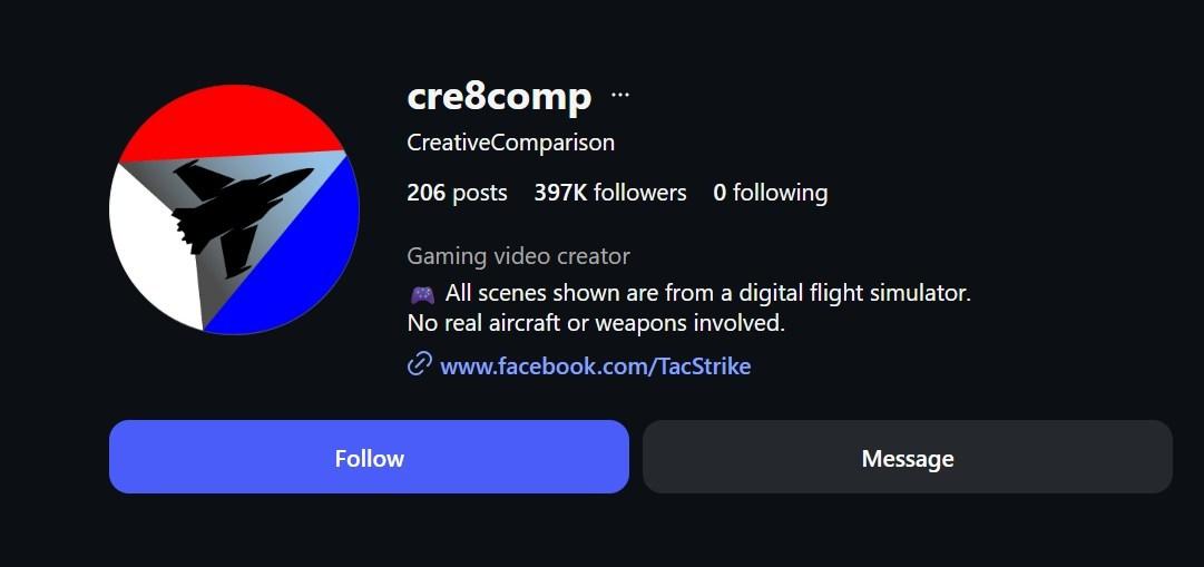 해당 계정 게임 콘텐츠 제작 계정이라고 밝힌 인스타그램의 “@cre8comp” 유저는 영어로 “F/A-18 호넷이 가장 강력한 Osa-AKM 미사일을 피해 간다!”라는 설명과 함께 영상을 올렸다. 계정 소개에 따르면 모든 영상 디지털 비행 시뮬레이터에서 제작된 것임이 명확히 기재되어 있다.