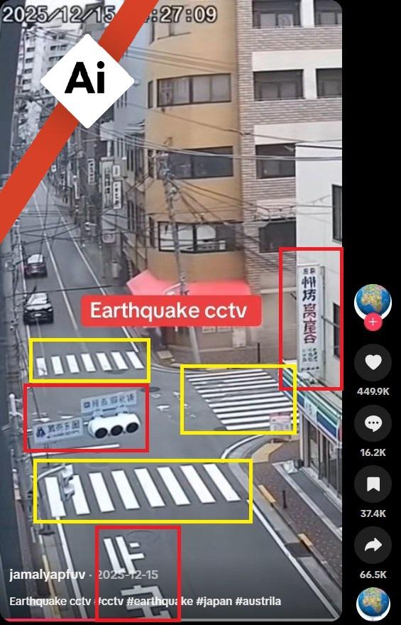 최근 일본 북부 지진현장 CCTV 영상, 실제 아닌 AI 조작