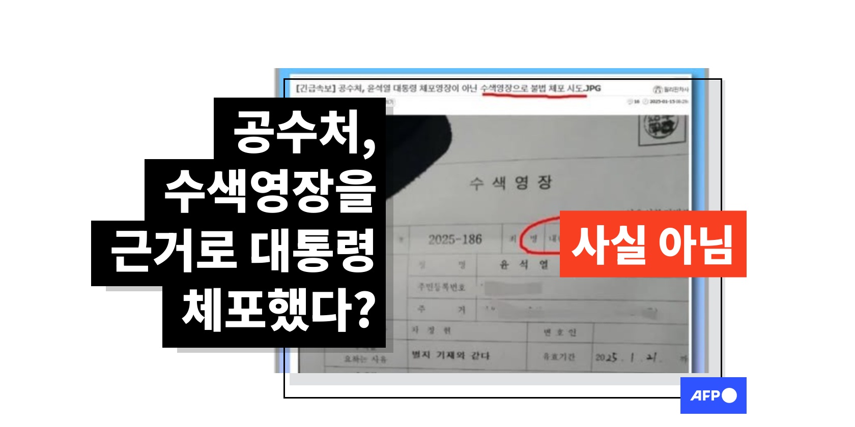 저작권 © AFP 2017-2025. 모든 권리 보유. 사용자는 웹사이트의 정보를 개인적인 용도나 비영리적인 목적으로 사용할 수 있습니다. AFP와 계약 없이 저작물의 일부나 전체를 복사, 출판, 방송하는 것은 엄격히 금합니다. 팩트체킹 콘텐츠 내에 묘사된 부분과 링크 형태로 첨부된 부분은 관련 정보의 이해를 돕기 위한 것입니다. AFP는 서드파티 콘텐츠 제작자나 저작권자로 부터 어떤 권한도 받지 않았기에 이에 따른 법적 책임을 지지 않습니다. AFP와 AFP 로고는 등록된 상표입니다.