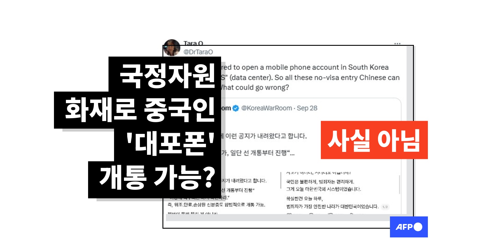 저작권 © AFP 2017-2025. 모든 권리 보유. 사용자는 웹사이트의 정보를 개인적인 용도나 비영리적인 목적으로 사용할 수 있습니다. AFP와 계약 없이 저작물의 일부나 전체를 복사, 출판, 방송하는 것은 엄격히 금합니다. 팩트체킹 콘텐츠 내에 묘사된 부분과 링크 형태로 첨부된 부분은 관련 정보의 이해를 돕기 위한 것입니다. AFP는 서드파티 콘텐츠 제작자나 저작권자로 부터 어떤 권한도 받지 않았기에 이에 따른 법적 책임을 지지 않습니다. AFP와 AFP 로고는 등록된 상표입니다.
