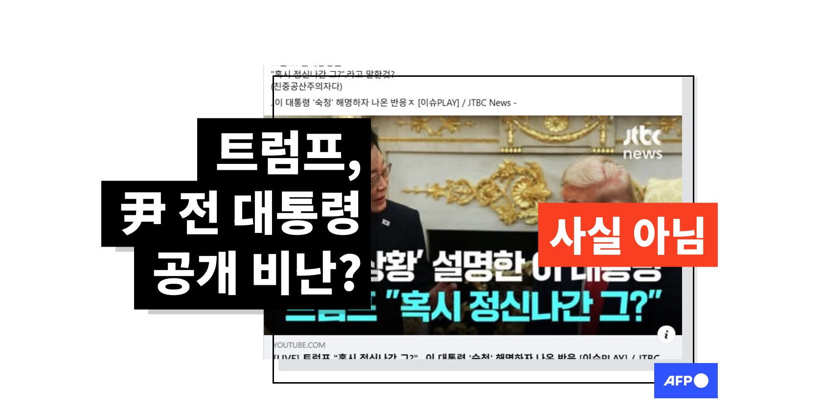 저작권 © AFP 2017-2025. 모든 권리 보유. 사용자는 웹사이트의 정보를 개인적인 용도나 비영리적인 목적으로 사용할 수 있습니다. AFP와 계약 없이 저작물의 일부나 전체를 복사, 출판, 방송하는 것은 엄격히 금합니다. 팩트체킹 콘텐츠 내에 묘사된 부분과 링크 형태로 첨부된 부분은 관련 정보의 이해를 돕기 위한 것입니다. AFP는 서드파티 콘텐츠 제작자나 저작권자로 부터 어떤 권한도 받지 않았기에 이에 따른 법적 책임을 지지 않습니다. AFP와 AFP 로고는 등록된 상표입니다.