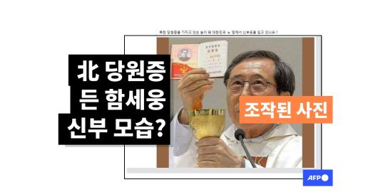 성체 든 함세웅 신부 사진에 조선노동당 당원증 합성한 것